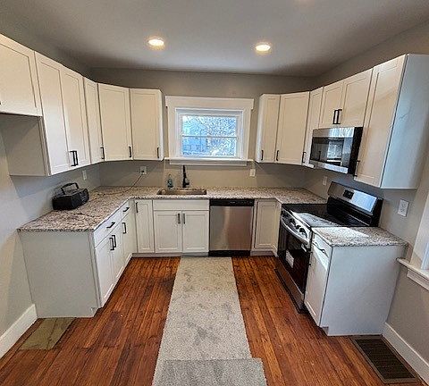 Completely rehabbed 3 bed 1 1/2 bath with main floor laundry. All new kitchen cabinets, counters, appliances, plumbing, electric, windows, HVAC and water heater. Beautiful hardwood floors in entry, living and kitchen. New LVP flooring in laundry and both bathrooms. New carpet in all bedrooms, 2nd floor landing and steps. Newly painted interior. full dry basement, off street parking and great porch for relaxing (Exterior of front and rear doors, porch and trim around porch will be painted as weather permits).