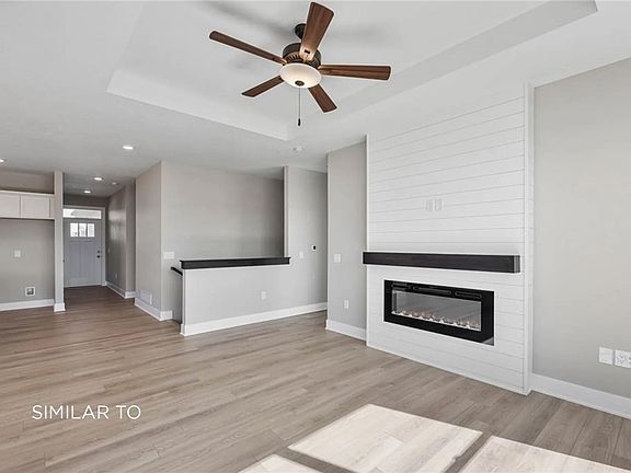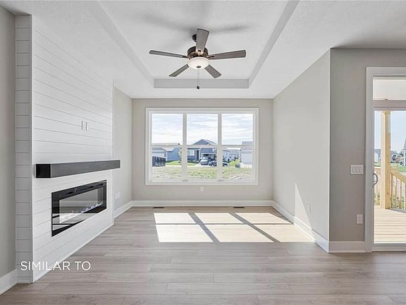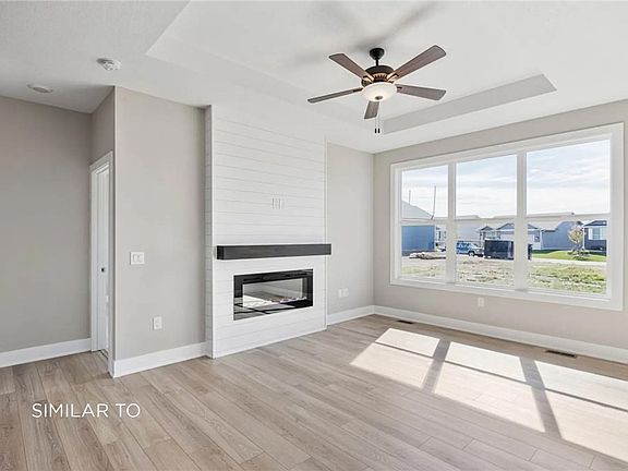 Jerry's Homes Duke ranch style home offers an open floor plan with 9' ceilings The main level has LVP flooring and huge windows providing tons of natural light and an electric fireplace in the great room. Kitchen features a large island, white cabinets, SS appliances and quartz countertops. Dining area has access to your deck for outdoor enjoyment. Primary suite features tray ceiling and private bath with double vanity, walk in closet and shower. Main floor laundry and bench seat in the mud room just inside your garage. Stylish black hardware and faucets. Full basement ready for future finish. Single family home with private yard and benefits of HOA which provides snow removal and trash service. Great location just east of I-35 and near Heritage Park and shopping, quick commute to DesM or Ames. Ankeny Schools. Jerry's Homes has been building homes since 1957 and provides a home warranty.