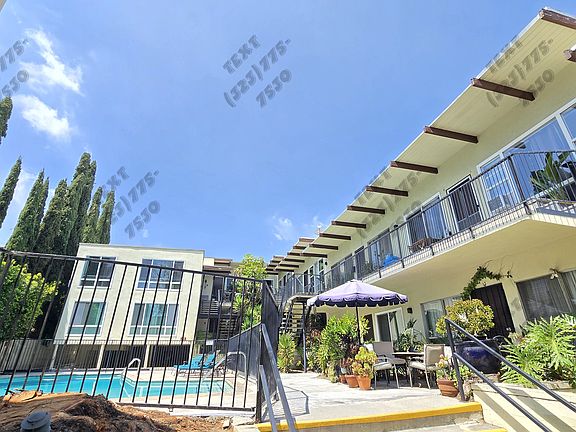Showing Appointments are EASY! (6am-8pm, 7 days) Just TEXT US to coordinate (Phone number in Blue, as you scroll down under "Listed By" tab on Zillow.) - Gorgeous Top floor unit with Great natural light. Mid Century Modern complex with Sparkling Pool and Jacuzzi. Wood plank style floors with white cabinets and stainless appliances in kitchen. Stone countertops. A/C is cold. Room for patio chairs out front. Peek-A-Boo views from floor to ceiling windows. Updated tile work and Sky light in bathrooms.. 1 parking only. Small pets ok with $500 pet deposit with Vaccination record and City Registration. Coin Laundry Facility Onsite. 1 single car parking. No additional spaces are available. LEASE START DATE WITHIN 2 WEEKS FROM APPLICATION DATE OR SOONER. 1 year lease. Owner pays water and trash. Tenant pays electricity and gas. $2800 security deposit. 1 parking space available and included. No additional spaces are available. All applicants must have credit established and in good standing in order to qualify. Each must provide most recent 30 days paystubs to prove that monthly household combined gross income is at least 2.5X the rent amount.
