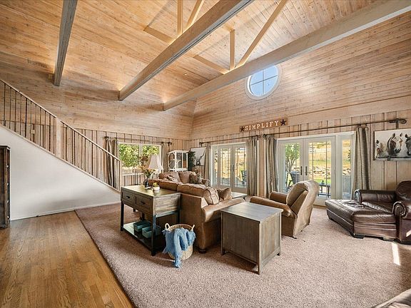 Experience the best of country living w/the conveniences of Spokane’s desirable South Hill. Through the Dutch door into the 3,286 sq ft home you'll discover 5 bedrooms, 3 bathrooms, & a stunning 2-story great room w/ vaulted ceilings & French doors opening to the garden patio. The open-concept kitchen, dining & 2nd living area showcase hardwood floors, while 2 woodburning fireplaces add coziness & charm. A 2nd Dutch door off the kitchen deck opens to enjoy sunset views. This 4.87-acre horse property offers a well-established ranch setup complete w/barn, multiple stalls, cross fencing, riding arena, loafing shed, hobby shed, coops, & storage shed. A 2-car garage & additional outbuilding/shop provide ample space for vehicles, hobbies, or storage. The landscaped grounds feature shady trees. Mechanical updates include a new furnace, whole-house generator, A/C unit, & gas hot water tank. With its blend of upgrades, charm, & tranquility, this slice of paradise is ideal for a hobby farm!