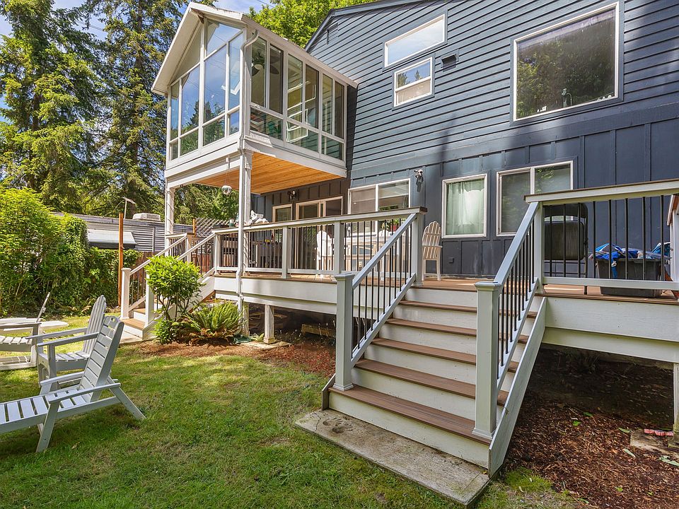 Amazing home with river front access, two full kitchens and five min it ed from down town renton. Amazing backyard deck. Lovely sunroom office that overlooks the river.