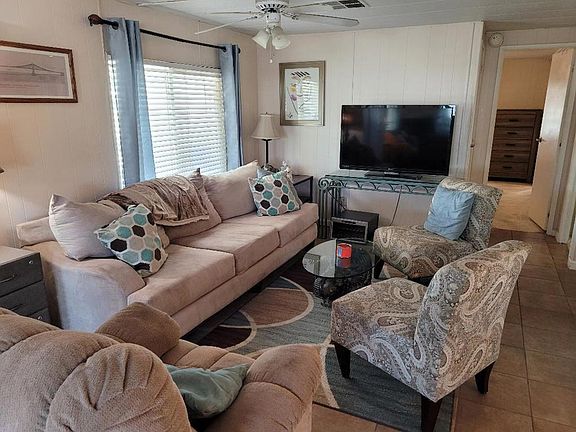 55+. Extra large cul-de-sac lot!! Has existing 433A with an assumable 2.65% VA loan! The mortgage company says anyone qualified can assume it. YOU OWN the land!! This house is beautifully situated at the bottom of a quiet, residential street and comes fully turnkey furnished with trendy furniture and a full complement of gourmet cooking tools. There is a working fireplace in living room. The backyard is a lush, delightful green paradise. Lots of lawn , colorful landscaping and an extra room that contains a freezer and extra storage. Kitchen has granite counters and is updated. Baths are upgraded and have tile showers. This home is a desert treasure and wont last long. Tri Palms is a vibrant community that offers unlimited golf to two owners on two lush golf courses. There are tennis courts, two pools and spas, a beautiful clubhouse and an active social community. Located in one of the best spots in the Valley you have access to every amenity including theaters and entertainment, restaurants, freeways, casinos and much shopping!