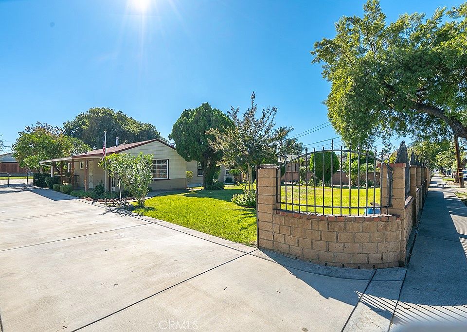 Welcome to this charming single-story home situated on a level .37-acre lot. Offering 3 bedrooms, 2 bathrooms, and 1,713 sq. ft. of living space, this property is thoughtfully designed for both comfort and versatility. The spacious kitchen boasts ample cabinetry, granite countertops, and a dedicated dining area, complemented by a formal dining room for special gatherings. The inviting living room features a cozy wood-burning fireplace, while the expansive family room provides endless possibilities—ideal for entertainment, a home office, or even a potential fourth bedroom. Step outside to your private backyard retreat with a covered patio, perfect for outdoor dining, relaxation, or hosting family and friends. The property is enhanced by a variety of fruit trees including oranges, lemons, apricots, grapefruit, grapes, and plums, allowing you to enjoy fresh fruit year-round. Additional highlights include a large driveway with space for approximately 10 vehicles, and a detached garage converted into storage with laundry hookups. The lot’s generous size offers potential for an ADU or Jr. ADU, making it an excellent investment opportunity. Conveniently located just minutes from Kaiser Permanente Hospital, shopping, Sierra Vista High School, local markets, and the 10 Freeway, with quick access to downtown Los Angeles in under 20 minutes. This home is being sold as-is and is truly a must-see to appreciate all it has to offer. Don’t miss this incredible opportunity—schedule your appointment today! The Sellers are in the process of moving and request that showings begin after the 19th.