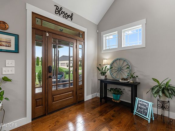 Location, location, LOCATION! Situated just minutes away from the entrance of the Great Smoky Mountains Nat'l Park and in one of Maryville's highly desired communities, Sweetgrass Plantation, this custom-built Craftsman-style home by Lamon & McDaniel Builders will not disappoint. Located just far enough from the hustle & bustle, yet close enough to shopping, medical, and schools. Driving up onto the stamped concrete driveway, your eyes are automatically drawn to the panoramic mountain views & fully stocked community pond w/perimeter sidewalk. Walking up to the extra-large front porch, the swing beckons you to sit & enjoy some sweet tea while taking in the scenery of the gorgeous & quiet neighborhood. Enter the solid wood front door to be greeted by a meticulously maintained home with REAL hand-scraped hickory hardwood flooring throughout main level & upstairs hall. Walk past the stairs to again experience panoramic mountain views visible from almost every room. The covered back porch is perfect for sipping your morning coffee while watching the sun rise up over the mountains. Other features include a stacked stone gas fireplace, large eat-in kitchen w/all matching LG stainless appliances including gas range w/double ovens and French doors refrigerator, all granite countertops & wood cabinets throughout the home, ceramic tile in all baths & laundry, automatic lights in some closets & pantry, on-demand water heater, and separate dining room w/butler's pantry. The large main floor primary BR boasts stunning views, bath w/large air-jetted tub, separate shower, large walk-in closet & linen closet. Upstairs you'll find 3 more spacious bedrooms with walk-in closets, a large bonus room (currently being used as BR), and 4 separate attic spaces. Laundry room has a folding counter, utility sink, storage cabinets and Samsung front-load washer & dryer w/pedestal drawers that stay with the home. A separate storage/utility room in the spacious 3-car garage is perfect for garden/lawn supplies.