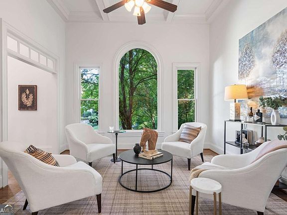 It is rare to find a home that blends timeless beauty with true craftsmanship-yet this residence delivers from the moment you step inside. A sweeping curved staircase, gleaming site-finished hardwoods, coffered ceilings, and a dramatic stacked-stone fireplace set the tone for a home that feels both sophisticated and refreshingly unique. Northeast facing for incredible morning sunlight. The main-level primary suite is a private retreat, featuring a soaring cathedral ceiling, designer lighting, a cozy fireplace, and a private door leading to the covered porch. The spa-inspired bath offers a double walk-in shower, soaking tub, dual vanities, and a fully customized walk-in closet. At the heart of the home, the kitchen balances elegance and function with white cabinetry, stone countertops, double ovens, a gas cooktop, pop-up vent, and warming drawer. A built-in hutch showcases your treasures, while the oversized walk-in pantry disguised as cabinetry keeps everything neatly tucked away. Flowing seamlessly into the family room, it is ideal for intimate evenings or lively gatherings. Additional main-level spaces include a formal dining room, refined living room, and a mudroom with a large laundry, all finished with meticulous trim and high ceilings. Upstairs, generously sized bedrooms and baths provide comfort and privacy for family or guests. The upper level kids entertainment room is ideal for all the toys, a hang out space and ideal study space. Designed to live beautifully through every stage of life, this home offers abundant space when loved ones are near, yet feels perfectly scaled for everyday living. An expansive rear porch overlooks the private backyard, while the daylight, walk-out basement awaits your vision for future expansion. Three car, kitchen level garage with one bay heated and cooled! Nestled at the end of a quiet cul-de-sac in an enclave of custom homes, this residence offers the prestige of a Roswell address paired with the advantage of Cobb County taxes, all within the sought-after Lassiter High School district. New roof installed in April All new paint and carpet and just-refinished wood floors make this home an easy decision. Don't miss your opportunity to see this beautiful home today.