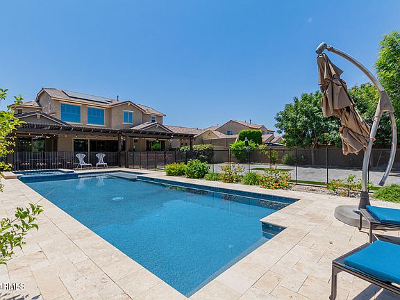 ALL NEW INTERIOR PAINT!! PRICED TO SELL BELOW RECENT SALES!! WALK TO GILBERT REGIONAL PARK AND KIDS CAN WALK TO BRIDGES COMMUNITY SCHOOL!! This Luxury Home was built by Pulte Homes in the Bridges with 4554 sq ft. 5 Bedrooms Plus a CASITA!! 4.5 Bathrooms and a 3 Car Garage that is Located on a PREMIUM Oversized Lot. THE BRIDGES Community is a Highly Desirable Neighborhood in Gilbert. Over $300,000 has been spent on the home for the Heated Pool/Spa, Landscaping, Pavers, Enclosed AZ Room, Paid Off Solar (19 KWS). The Downstairs features a Master Retreat with His & Her closets, Dual Sinks, Soaking Tub & walk-in shower. A Detached Casita is perfect for Next Gen Families, Home Theater, Bonus Game Room, Office, or Visiting Guests. The Backyard is perfectly set up for Entertaining