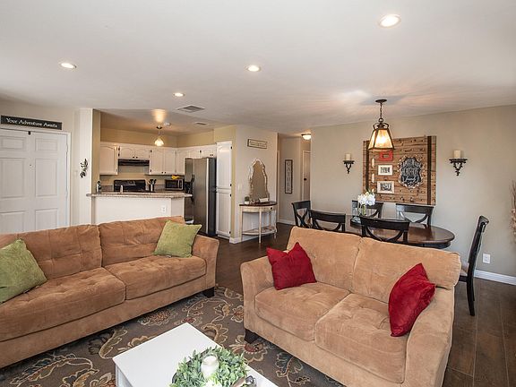 Welcome Home to this Upgraded Penthouse Family Home in Westlake Village among the Oak Trees. Light, Bright & Open with newer wood like floors, tile bathroom floors, six panel doors, recessed lighting in the living room & bedrooms all on dimmers,, 4'' baseboards, granite counters, white kitchen cabinets & stailnless steel appliances. Dual pane windows & slider. Cozy fireplace in the living room, Tandem 2 car garage with extra storage , indoor laundry and large open deck out the living room slider. Community Pool & Spa. Just a few blocks away from the promenade, shops, & restaurants. This complex is FHA approved!