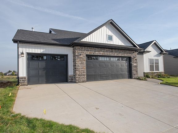 Brand new by Majestic Homes, this beautiful Misty Morning floor plan is located in the highly desirable maintenance-free section of West Lafayette’s Stonehenge neighborhood, just minutes from Purdue University, US 52 W, US 231, shopping, and TSC’s Klondike and Harrison schools. Offering 1,854 square feet of thoughtfully designed living space, this split-floor plan ranch from the Cottage Series blends style and function with an inviting foyer that leads into a great room highlighted by cathedral ceilings and a corner gas fireplace with a custom surround. The spacious kitchen is a showstopper with a 7-foot island with bar seating, abundant custom cabinetry, granite countertops, stainless steel appliances, staggered cabinets, tiled backsplash, under-cabinet lighting, and a large pantry, all open to the dining area and a bright sunroom that flows to the 14x12 covered porch. The owners’ suite is a private retreat featuring cathedral ceilings, a dual sink vanity, a walk-in tiled shower, linen closet, and a generous walk-in closet, while two additional bedrooms share a full bath. A well-planned laundry room with cabinetry and folding space adds convenience, and an oversized three-car garage with pull-down attic access provides excellent storage. Additional features include luxury vinyl plank flooring throughout the main living areas and a water softener. Stonehenge offers an array of neighborhood amenities including a pool and clubhouse, playground, sand volleyball and soccer fields, walking trails, two ponds—one stocked with fish—and community street lights, while the HOA takes care of snow removal, lawn care, and trash service, giving you the perfect balance of comfort, convenience, and low-maintenance living.