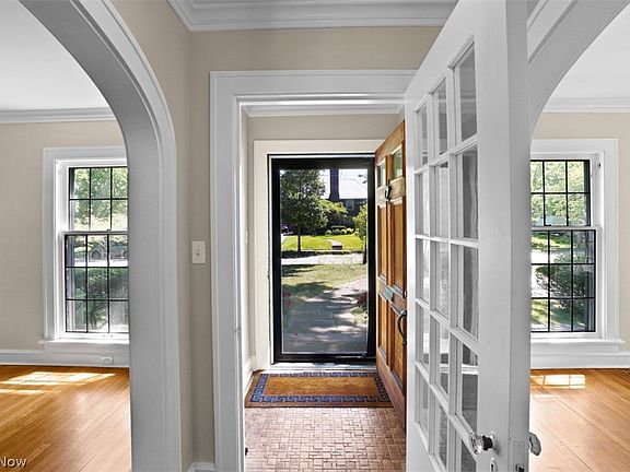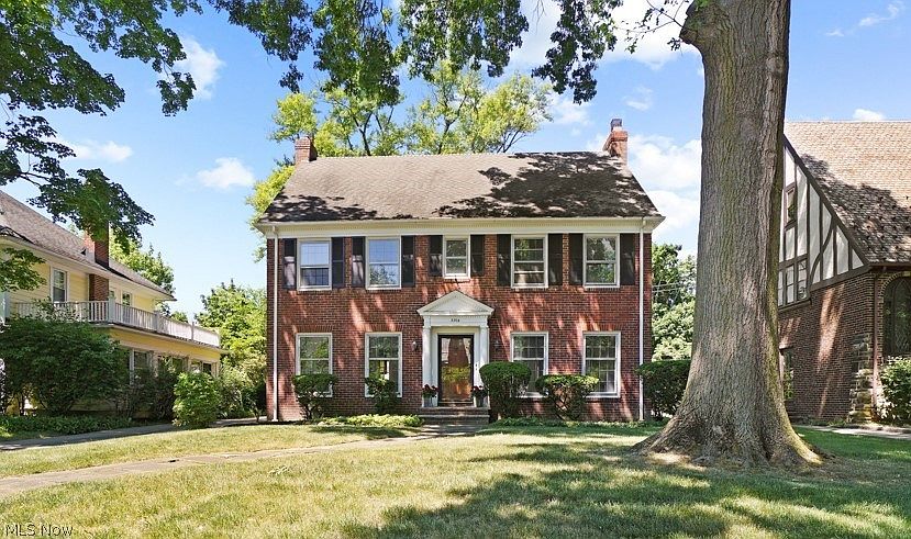 Classic 1926-built brick Georgian center hall colonial in Fernway ready for the current owner of 44 years to pass the torch to the next generation to own and enjoy. Stunning curb appeal! A sun-filled home as Georgians are, symmetrical with windows on all sides, flooding the rooms with light. Neoclassical pediment with dentil molding and columns set the tone for the balanced proportions throughout this inviting home. Quality original character in the newly refinished hardwood floors, elegant archways, fireplaces, and leaded-glass windows. Enter the spacious living room with fireplace. Family room or sunroom on back for quiet reading or playroom area, with access to yard. Formal dining room with leaded-glass corner cabinets. Eat-in kitchen offers a nice footprint for a refresh or redo, currently with solid wood slab cabinets, vintage cabinet glass inserts, and double ovens. Powder room on 1st floor. Second floor offers a well-appointed owner's bedroom with two closets closet, walk-in closet has a door to access 2nd floor deck. Owners bedroom also includes ensuite bathroom with double sinks and tub/shower combo. Two additional bedrooms and hallway bath complete the 2nd floor. Upstairs, the 3rd floor offers flex space for 4th bedroom, and option to reinstall a 3rd full bathroom if desired as plumbing is capped (as is). Lower level basement includes a rec room space as well as unfinished area for storage, laundry, a "unfinished" half bathroom, and mechanicals systems. Two car detached brick garage with new opener and yard space for play and patio hang out. Dual-zone furnace and AC added in 2020! Whole house interior freshly painted making it move in ready with a few discretionary decorative updates as needed. Exceptional value in Fernway! Maynard features larger homes and spacious lots, close to Van Aken District, RTA light rail, shopping, schools, parks, and more. No wonder it's such a coveted location!