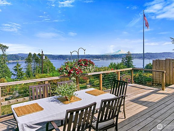 This charming view home has been extensively remodeled with classic Scandinavian flair. Offering the ease of one-level living-3 bedrooms and 2 baths on the main floor. A bonus flex space upstairs has a 3/4 bath and private view deck. You'll love waking up to sunrises over Mt. Rainier and the charm of WA ferries cruising through Rich Passage. Located next to Illahee State Park on a quiet .65 acre lot, you’ve got it all right here. Lace up your walking shoes and enjoy miles of park trails, a sandy beach & boat launch. You can’t miss the IMPRESSIVE SHOP-3,200 sf w/ 4 roll-up doors & metered electrical service added in 2021. New development rules inside UGA may allow for ADU permitting. Welcome home…and bring ALL your hobbies and toys!