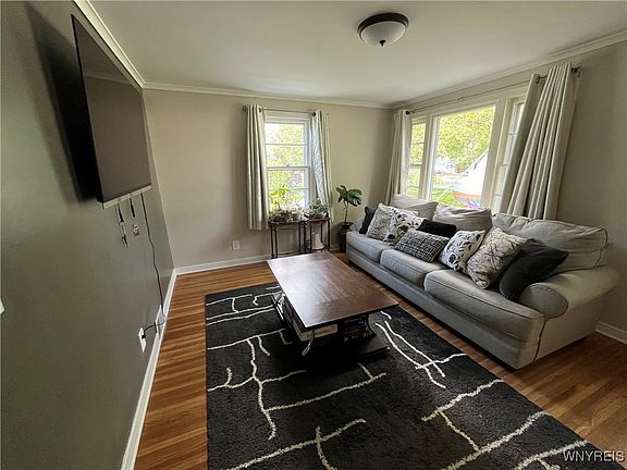 OPEN HOUSES SAT & SUN OCT 18th & 19th 11AM - 1PM. Charming and move-in ready 4 bed 1.5 bath Cape in the Sandy Beach area of Grand Island. 2 bedrooms downstairs for easy one-floor living, 2 bedrooms upstairs offering flexible space for family, guests, or home office. Warm and inviting living room with gleaming hardwood floors that flow through the first floor bedrooms. Cozy eat-in kitchen with fridge, electric oven/range and dishwasher included. Solid mechanicals and roof, updated electrical panel, central A/C. First floor has a beautifully renovated full bathroom with modern finishes, upstairs has a convenient half bath. Nice yard and landscaping, young apple trees and concrete patio of the back of the house, perfect for outdoor gatherings. 1 car garage. Full basement with glass block windows, washer/dryer included. Near Huth Road elementary and in the Sandy Beach Park neighborhood - eligibility to join a private beach club for $75/year. Come view this cute Cape today, showings start immediately. Offers reviewed as received, seller reserves right to set a deadline.
