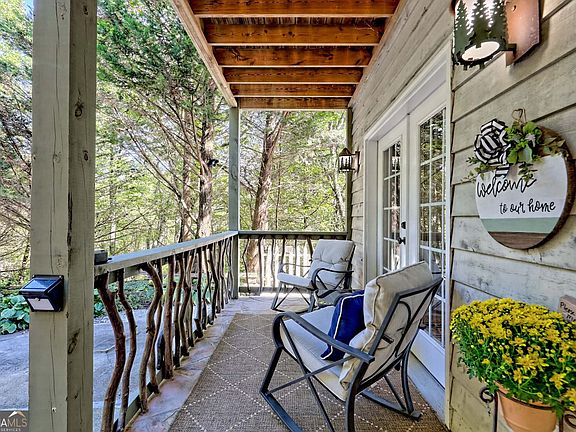 Nestled at a breathtaking 3,900-foot elevation in the heart of the North Georgia Mountains, this extraordinary 4-bedroom, 4.5-bath, 3-story retreat spans over 3,000 square feet of luxurious living space. Perfectly positioned in Sky Valley, GA halfway between the charming towns of Dillard and Highlands. This mountain home offers cool summer breezes and serene vistas, making it an idyllic escape for families, friends, or unforgettable reunions. As you step into the first level you're captivated by a grand stone-floored great room, with a majestic stone fireplace with gas logs. A king bedroom with a private full bath opens through French doors to a secluded covered patio, perfect for relaxing mornings and cozy evenings by the firepit Ascending to the second floor, an open layout awaits adorned with heart pine floors and soaring 9-foot ceilings. The expansive living and dining areas, each graced with a stone fireplace, create an inviting ambiance for gatherings. Four sets of French doors lead to covered porches where you can enjoy the mountain weather and panoramic views of the mountains. The gourmet kitchen is fully equipped and features a spacious island with additional seating, perfect for casual meals or lively conversations. The dining area comfortably seats eight, with more space on the porch expanding your entertaining opportunities outside. The top floor welcomes you with a bright and cheerful sunroom, bathed in natural light and furnished with a day bed that transforms into a king bed. Three luxurious king bedrooms, each with its own private ensuite bath, offer ultimate comfort and privacy for your family and guests. The master suite and sunroom open to the upper-level covered porch, a serene spot to unwind with a book or lose yourself in the breathtaking mountain scenery. Abundant windows and French doors frame the stunning landscape invited the outdoors in. This North Georgia gem is more than a home-it's a lifestyle. Whether you're gathering loved ones around the fire, dining with a view, or soaking in the tranquility of the mountains, this retreat promises memories that will last a lifetime. Don't miss your chance to own this slice of paradise, where every detail is designed for comfort, elegance, and the timeless beauty of the Blue Ridge Mountains.