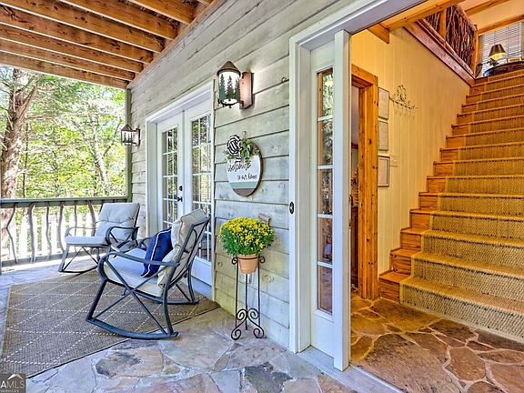 Nestled at a breathtaking 3,900-foot elevation in the heart of the North Georgia Mountains, this extraordinary 4-bedroom, 4.5-bath, 3-story retreat spans over 3,000 square feet of luxurious living space. Perfectly positioned in Sky Valley, GA halfway between the charming towns of Dillard and Highlands. This mountain home offers cool summer breezes and serene vistas, making it an idyllic escape for families, friends, or unforgettable reunions. As you step into the first level you're captivated by a grand stone-floored great room, with a majestic stone fireplace with gas logs. A king bedroom with a private full bath opens through French doors to a secluded covered patio, perfect for relaxing mornings and cozy evenings by the firepit Ascending to the second floor, an open layout awaits adorned with heart pine floors and soaring 9-foot ceilings. The expansive living and dining areas, each graced with a stone fireplace, create an inviting ambiance for gatherings. Three sets of French doors lead to covered porches where you can enjoy the mountain weather and panoramic views of the mountains. The gourmet kitchen is fully equipped and features a spacious island with additional seating, perfect for casual meals or lively conversations. The dining area comfortably seats eight, with more space on the porch expanding your entertaining opportunities outside. The top floor welcomes you with a bright and cheerful sunroom, bathed in natural light and furnished with a day bed that transforms into a king bed. Three luxurious king bedrooms, each with its own private ensuite bath, offer ultimate comfort and privacy for your family and guests. The master suite and sunroom open to the upper-level covered porch, a serene spot to unwind with a book or lose yourself in the breathtaking mountain scenery. Abundant windows and French doors frame the stunning landscape invited the outdoors in. This North Georgia gem is more than a home-it's a lifestyle. Whether you're gathering loved ones around the fire, dining with a view, or soaking in the tranquility of the mountains, this retreat promises memories that will last a lifetime. Don't miss your chance to own this slice of paradise, where every detail is designed for comfort, elegance, and the timeless beauty of the Blue Ridge Mountains.