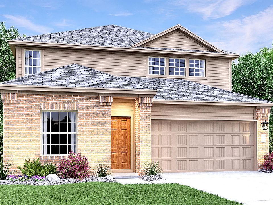 The Brock - This two-story home features a versatile layout with the owner’s suite on the first floor along with a kitchen, nook and family room. Plus, a study off the kitchen and a partially covered patio off the living room. Upstairs are, three additional bedrooms, a full bathroom and a game room, making it great for kids. Photos are for illustrative purposes only. Estimated Completion January 2026.