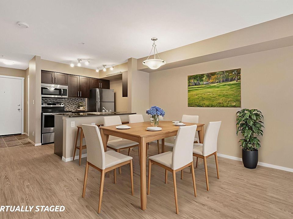 Vinyl plank flooringModern kitchenGranite countertopsStainless steel appliancesIn-suite laundryCovered balconyGas line for bbqs