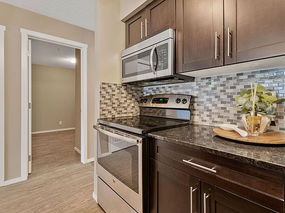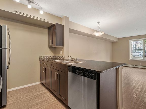 Welcome to this stylish 2-bedroom, 1-bath main floor condo offering low-maintenance living in a prime location. The open layout features vinyl plank flooring with no carpet, a modern kitchen with granite countertops, stainless steel appliances, and convenient in-suite laundry. Enjoy year-round comfort with a heated underground titled parking stall and private storage room. Step outside to your covered balcony, complete with a gas line for BBQs—perfect for relaxing or small gatherings. This building permits short-term rentals (Airbnb/VRBO), making it an excellent opportunity for investors seeking flexible rental income, or for buyers who want the option of personal use and hosting. With easy access to the QE2, Anthony Henday, shopping, dining, and everyday amenities, this property offers the perfect blend of comfort, functionality, and investment potential. Ideal for first-time buyers, down-sizers, or investors looking for a move-in ready home in a sought-after community.