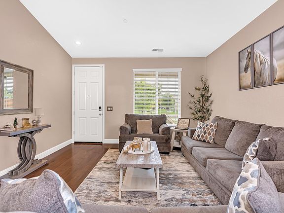 Why buy new? This beautifully maintained North Merced home offers modern comfort, tasteful finishes, and true pride of ownership throughout. From the moment you arrive, you'll appreciate the neatly manicured landscaping and welcoming curb appeal. Inside, you're greeted by vaulted ceilings, rich engineered hardwood floors, and elegant two-tone paint that together create a warm and inviting atmosphere.The front living and dining areas are open and bright, highlighted by stylish light fixtures and abundant natural light. The kitchen is ideal for everyday living and entertaining, featuring a large island, gas cooktop, built-in oven, microwave, dishwasher, and generous cabinet space. It opens to the comfortable family room with a cozy fireplace and offers direct access to the backyard and patioperfect for gatherings and outdoor enjoyment.The primary bedroom is spacious and includes a dual-sink vanity and a large shower with a glass enclosure. The hall bath offers a shower-over-tub with tile flooring and a single-sink vanity. Energy-efficient features include a tankless water heater and a fire suppression system.Centrally located, this home is close to schools, shopping, restaurants, and the hospitaloffering both comfort and convenience. This pristine home is truly move-in readywhy buy new when you can have it all right here?