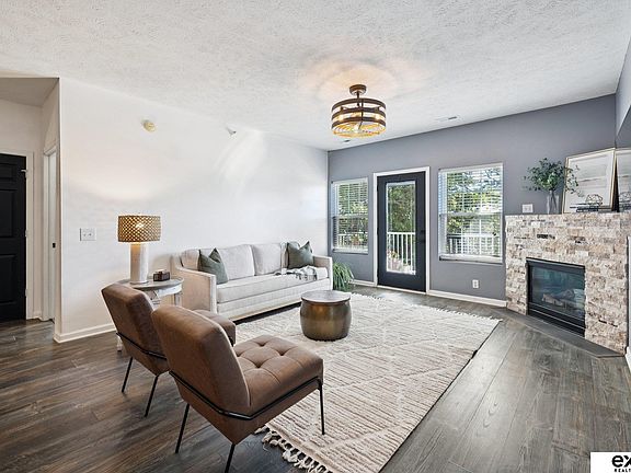 Welcome to easy living in the sought-after Belle Meade community! This beautifully updated 3-bedroom, 2-bath condo features luxury plank vinyl flooring throughout, an open and spacious layout, and a private deck with a peaceful view. The primary suite includes a walk-in closet and private bath, while the kitchen flows seamlessly into the dining and living areas—perfect for entertaining. Enjoy the convenience of a private garage with direct access to your home. The HOA covers exterior maintenance, lawn care, snow removal, and access to the clubhouse, gym, and pool. Fantastic West Omaha location close to shopping, dining, and main commuter routes!