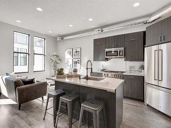 Fabulous new construction row homes with rooftop views! Centrally located near RiNo, Larimer Corridor and historic Curtis Park, you will be walking distance to many popular bars, cafes and restaurants. The open living area features a gourmet kitchen with an Italian Bertazzoni gas range and microwave and Kitchenaid appliances. With extra high ceilings and exposed ductwork, it has the feel of an urban loft. Entry level study/guest bedroom ideally located for a home office, or to maintain privacy from your guests or roommate separate from the main living area. Enjoy the security of a two car attached garage. Wind down with a glass of wine or entertain your friends on the expansive rooftop deck with city and mountain views. Solar panels included (owned, not leased), to help cut down your utility costs. NO HOA!!! Party Wall Agreement with management fee of approximately $100 per month for snow removal, landscaping and grounds maintenance. All appliances provided including washer and dryer. BUILDER IS OFFERING A $10,000 INCENTIVE which may be used for rate buy down, closing costs, or price adjustment.