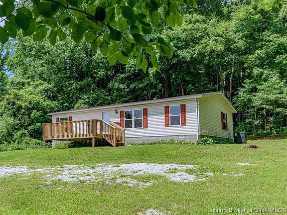 Welcome to your recently renovated, country-cozy home nestled on your own private 5-acre wooded sanctuary! This property features a completely remodeled 2000 manufactured home situated off the beaten path on a 5+/- acre all-wooded lot, blending modern comfort & convenience with nature’s peace & tranquility. Very private location, abundance of wildlife, & only mins from Corydon & I-64 Exit 105! Recent updates include roof, plumbing, cabinets, flooring, bathrooms, kitchen, doors & windows, paint, front deck, side steps, heat & air, & water heater. House interior: new Lifeproof vinyl plank flooring; eat-in kitchen includes all new Whirlpool appliances & new wooden cabinets & countertops; master bedroom includes bathroom; master bath & secondary bath both include newly installed tubs, tile, toilets, sinks, & vanities; separate utility room includes new Whirlpool washer & dryer. Exterior features: new 3D dimensional shingled roof; all new windows & doors; new 16x10 deck at front entrance; new steps at side entrance. Lot features: wooded acreage; mature trees; garden/utility shed; & privacy! Mechanicals: updated plumbing; newly installed electric furnace & central A/C; new electric water heater; public water onsite; septic system. Perfect for a starter or small family home, downsizing, or somewhere to get away from it all! Move-in ready and immediate possession available!