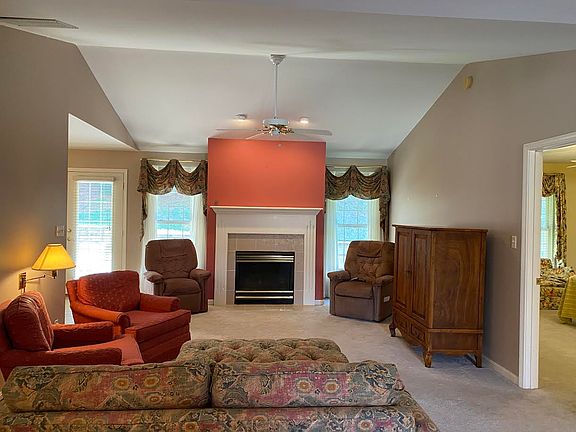 Beautiful move-in ready 2-bedroom, 2-bath condo on Evansville's North Side in Danbury Villas. This spacious home offers a large great room with vaulted cathedral ceilings, a built-in office, a fireplace, and an abundance of natural light. With an island and large dining area, the eat-in kitchen provides the perfect place to entertain. The over-sized master suite boasts a walk-in shower, separate bathtub, linen storage, large vanity, and walk-in closet. The guest bedroom is located off the entry, with a full bath just off the entry. The laundry room completes the interior floor plan. With a concrete patio off the dining area, outdoor dining and entertaining are a breeze. The retention wall and privacy-fenced separation between homes add privacy to the outdoor space. Sale includes: range/oven; dishwasher; microwave; and refrigerator.