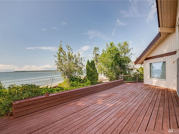 Beach Living! Welcome home to this open concept house with a loft and huge windows showcasing 76 feet of private waterfront. This neighborhood is a hidden gem in Whatcom County, yet close to Bellingham. Drink your coffee in the morning while watching the bald eagles and herons catch their breakfast. Catch crab from the bay in your front yard for dinner, then watch the sunset over the San Juan Islands. The property totals 2.64 acres and features walk on waterfront, huge deck and a mature orchard.