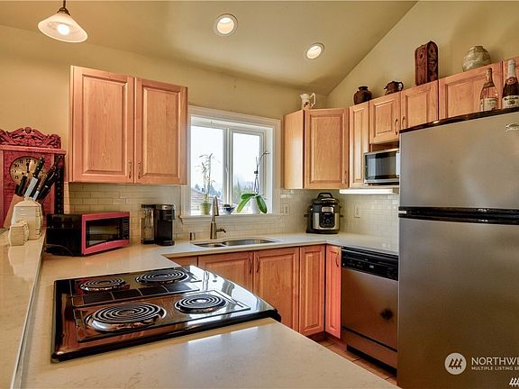 Assumable FHA loan! 2.875% $286K. Beautiful 3BR 2BA townhome in quiet neighborhood. Top-floor open concept living with sunny year round, all season, amazing territorial, Cascade, and Rainier views. Open and airy space, open kitchen, vaulted ceiling, cozy gas fireplace, quartz counters and back splash, Jenn Air Oven,, stainless steel appliances, newer high end washer and dryer, and whole house radiant (hydronic) heat. Small, friendly, well-managed 6 unit community. Big 1.5 car garage + 1 space outside. Central location, Walk or bike to restaurant, shops and many other amenities. Quiet residential street with grass strips and sidewalk, and plenty of street parking. I-5 and light rail easy access to Boeing, downtown Everett and Seattle.