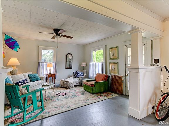 Vintage charmer on the Ilwaco/Seaview border hosts 4 bedrooms with an updated bath, adorable country kitchen and large living/dining room area with built in book cases. West facing sun porch all on a large lot.