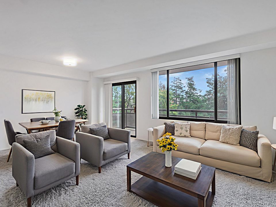Welcome to this spacious 2 bedroom 2 bathroom condo located at Cathedral Park on Wisconsin Ave. Inside you will find an open living area with large windows, wall-to-wall carpeting, a dining nook, and a bright kitchen with updated appliances and ample storage. Both bedrooms are generously sized, with great closet space, and the unit includes two full bathrooms. Natural light fills the home throughout the day.