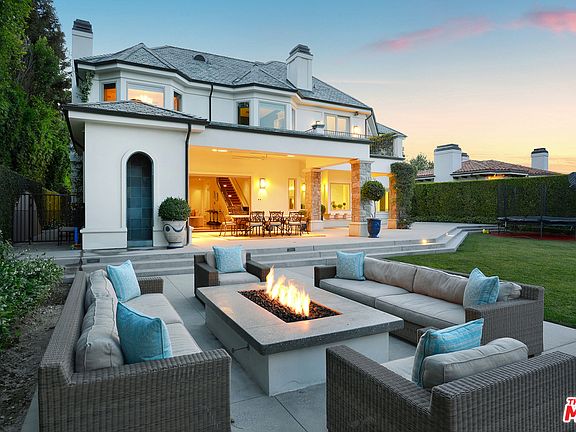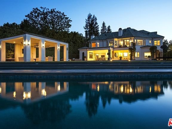 Stunning extremely private guard gated Mulholland Estates chic traditional with explosive valley light views with large flat yard, pool house w/ separate suite, infinity pool, and hotel-style poolside cabana . Impressive double-height entry with private office conveniently tucked away off the foyer. 8 bedrooms and 11 baths with theater, gym, and elevator. Oversized chef's kitchen with giant islands with adjoining family room with bar opening to covered outdoor loggia with fireplace. Fabulous family dining room, formal living room and card/game room with french doors to covered patio. Stunning master suite with gorgeous views, sitting area, giant master bath and walk-in closets. Adjoining second suite next to the master which can be used for a second office. 4 additional suites upstairs with oversized guest suite with private entry and stairwell from the outside. Wonderful, timeless floorplan with loads of light and an elevator with attention to detail throughout. Community tennis and pickleball courts.