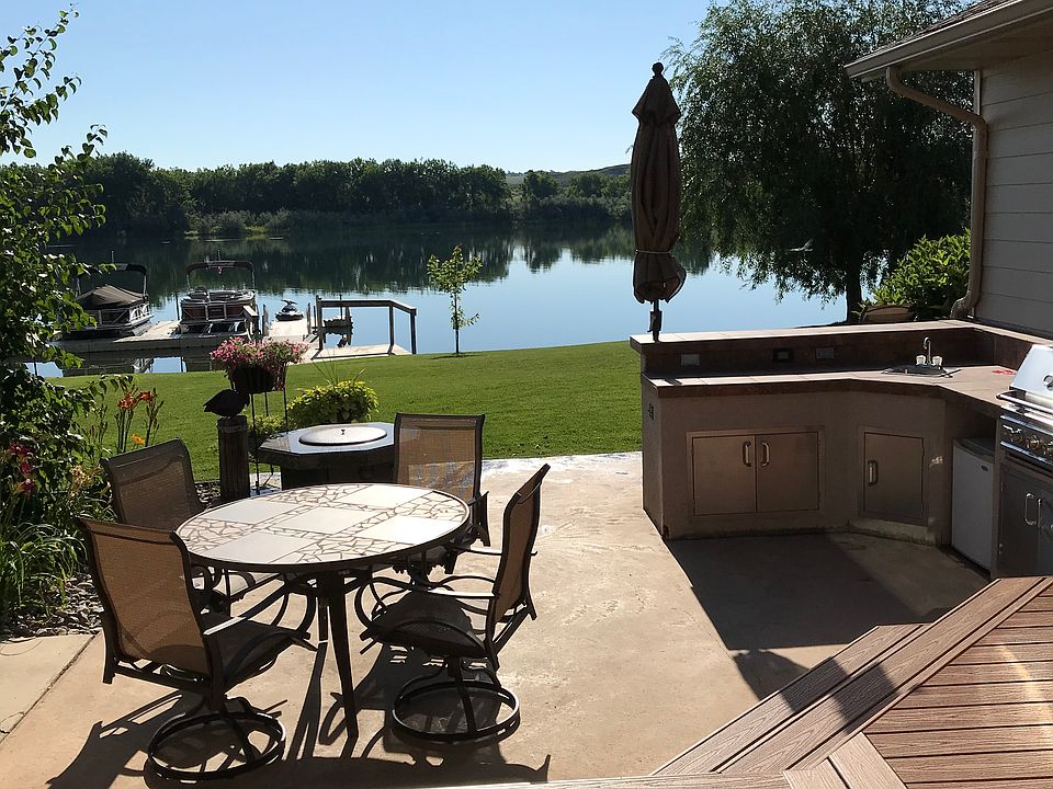 Beautifully renovated 4bdrm,2.5 bath w/water front property & dock access to Missouri River w/unbelievable views! Updates incl. new siding/2019,new HVAC/2017 & new roof & flooring/2011. Home offers flowing floor plan,open LR, family room,large kitchen/dining w/gl.doors to a great deck & patio w/nat.gas outdoor grill! Cozy Rec room above garage! 3 car garage & addit.single garage!