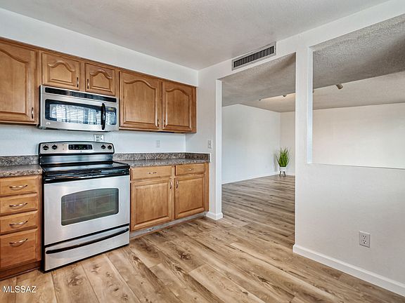 This 3BD/2BA one level corner townhome offers comfort and convenience in a prime central Tucson location. Features include new flooring, freshly painted, covered back patio access (one of the few in the community!) a private front courtyard entrance and one dedicated covered parking space. Enjoy easy access to the Tucson Racquet & Fitness Club, Banner, and the UA campus. Step outside to the Rillito Riverwalk & Bike Loop for recreation right at your doorstep. HOA ($108) covers trash, water, sewer, exterior maintenance, clubhouse and community pool. And, this home sits in the complex near the pool and guest parking! Come and enjoy!
