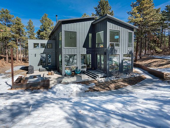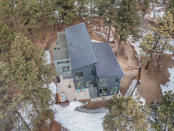Gorgeous 2 Story Home in the highly desirable Assembly Estates. Situated on a Tranquil & Park-like property backing up to a 385 acre ranch w a Conservation Easement! Nestled amongst Mature Ponderosa Pines on a 5 Acre site, this Stunning Home offers 3 Beds, 3 Baths & an oversized 960 SqFt Attached Garage. Spectacular Custom Home boasts a true Open Floorplan & Soaring Ceilings. Abundant Large Windows throughout flooding the home w Sunlight & capturing the indoor-outdoor Colorado lifestyle that you will love. Impressive Features of this Modern style Home begin w a Spacious Vaulted Great Room w 2 Story Windows & cozy Wood Burning Stove. Gourmet Kitchen has SS appliances, a Prof 8-Burner Gas Range, Double Ovens & Sleek White Cabinetry. Sun lit Dining area is surrounded by Expansive Window The French doors lead to the good-sized back Patio; all ideal for Relaxing & for Entertaining. Main level Large Office/Bonus Room with abundant Sunlight has a Cathedral Ceiling, 2 Story Windows & Patio access. A Powder Room & a Mud Room with Storage space complete the Main level. Step up the Wooden Staircase to the Vaulted Primary Suite with space for a Sitting area with lovely vistas, a Walk-in Closet and a Lavish 4-Piece Bath with a Large Walk-in Shower with Dual Shower Heads. Upper Level includes 2 more Bedrooms, both Vaulted, one has a Loft area, a Full Bath with Double Vanities. There's a Conveniently located Laundry Room finished with Cabinetry and a Utility Sink. Take advantage of Central A/C, Neutral Paint palette, very Low maintenance Durable concrete Flooring on main level. No HOA fees, Lower Property Taxes. Enjoy your own piece of Paradise surrounded by Majestic Pines, Gambel Oak and grassy Meadows. Quick, Easy access to I-25, only 3.5 miles, and just 6 miles to Monument with Shopping, Dining and Retail.