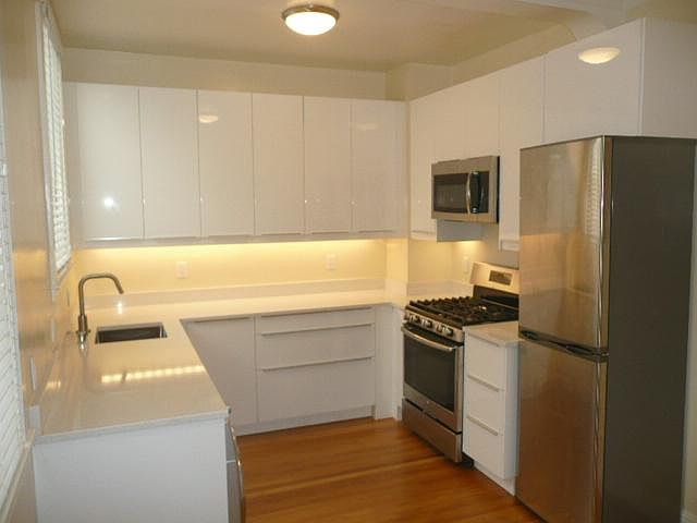 Spectacular TOTALLY remodeled TOP FLOOR large Studio with in unit LAUNDRY (the only one on the market) & FULL Memorizing, knock your socks off Full view of the Golden Gate Bridge from Living and Bedroom area, across from Moscone park! This is the place to WFH! All new stainless kitchen with chef's range, dishwasher, built in micro, and stone counters. Beautifully remodeled bath. Large dining area. Two BIG closets. Fresh hardwood, paint, window coverings & light fixtures. ALL day sun and super quiet with new double pane windows. Roof deck and nice yard. Parking available for an additional $250.00 per month. Chestnut St. shops down the block. Safeway a short stroll. Downtown trans & Tennis courts also across the street. No disappointments whatsoever and never a fee to apply! Safe & EZ to show. This is a special not to be missed apt. Please call or text Mikayla for a showing or more details. Thank you. Owner pays trash, water, and heat.