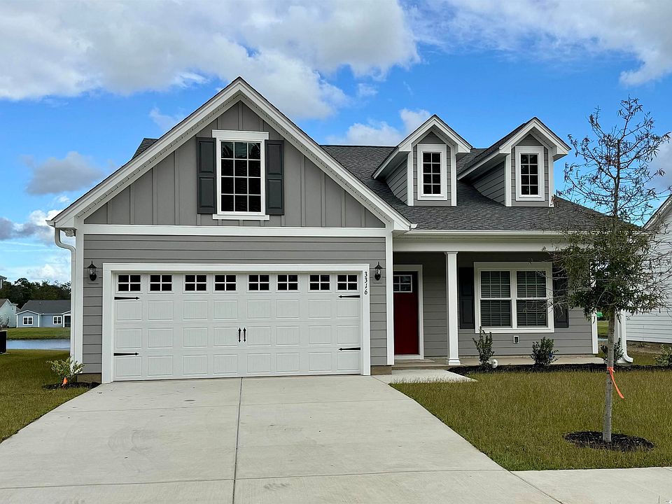 Welcome to Rivertown Row North, the most anticipated new development in the heart of Conway. Enjoy the comfort of Natural Gas heat, cooking & tankless hot water in this 4 bedroom 3 bath Lakefront home. The downstairs of this 1.5 story home has a large rear Master suite, another bedroom, full bath laundry room, and kitchen with Quartz counter tops, subway tile backsplash, pantry, and kitchen island w/ seating. Upstairs has 2 more bedrooms and a 3rd bath. There is also a 2.5 car Garage with a recessed 10x11 work area, covered front porch, yard Irrigation, and a 13 x 10 covered rear patio with additional 13 x 10 concrete slab that doubles your outdoor entertainment space. Homes purchased early in the construction process may have Customization options. All homes in Rivertown Row North feature wider than average lots, open floor plans, 9' ceilings, painted garage interiors, fully cased windows, GAF high performance architectural shingles, 12' roof overhangs, Aristokraft Birch shaker cabinets, Rinnai tankless water heater, Frigidaire stainless appliances, and many other upgraded architectural details. The neighborhood will feature sidewalks, lighting, and a future community pool with pavilion. Building lifestyles for over 35 years, we remain the Premier Homebuilder of new residential communities and custom homes in the Grand Strand and surrounding areas. We are three-time winners of the Best Home Builder award from WMBF News Best of the Grand Strand. In 2023, we were also voted Best Residential Real Estate Developer in the Myrtle Beach Herald Reader’s Choice Awards. We began and remain in the Grand Strand, and we want you to experience the local pride we build today and every day in Horry and Georgetown Counties. Welcome Home at Rivertown Row North. Pictures in this MLS listing are not of the actual house. Listing pics are of the same floor plan from a different neighborhood. Colors, flooring, upgrades and other features will likely be different.