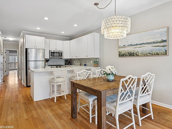 Highly desirable 3 bed, 2.5 bath duplex-down nestled on a picturesque, tree-lined one-way street in prime Lakeview, within the coveted Nettelhorst school district! The open-concept main level features a chef's kitchen with white cabinetry, quartz countertops, subway tile backsplash, and a large breakfast bar-perfect for everyday living and entertaining. Enjoy newer stainless steel appliances, a pantry, and an expanded workstation complete with a second sink and dishwasher! The inviting living room boasts a gas fireplace with custom tile surround and opens to a Juliette balcony overlooking the fenced-in front yard. A spacious dining area easily fits a full-size table, and a convenient half bath completes this ideal entertaining space.The primary suite offers two walk-in closets, a newer private deck, and a luxurious ensuite bath with quartz counters and a jacuzzi tub. The second bedroom is also on the main level. The lower level features a relaxing family room with a second fireplace, a large third bedroom, full bathroom, and a laundry room with side-by-side washer/dryer and ample storage. Garage parking and additional storage included. Unbeatable location on a quiet street just moments from Wrigley Field, neighborhood favorites like Mia Francesca, Figo Wine Bar, Sheffield's, and Bittersweet Pastry, as well as parks, shops, and public transit. Steps to Margaret Donahue Park and more!