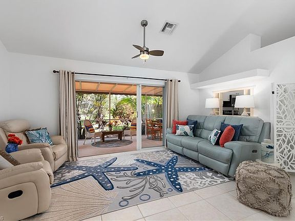 If privacy and quiet are what you are seeking, then his is the home for you ~ Professionally designed and furnished, this ia a jewel of a condo! 3 pets of all sizes welcome here!! Yes, large dogs welcome!! Fall in love with this coastal California vibe home and residential walkable neighborhood. Concrete block single family living within a Condo community ( no sharing a wall) this is called an envelope condo which includes yard maintenance and irrigation water and inside water with low HOA fees. Lives large with over 1900 sq feet total sq.footage, , natural light fills the high ceilings and 3 bedroom with double garage tucked into its own private residence. You have a backyard which can be fenced for privacy, most unusual and a plus for a condo!!! The Location is prime and within 4 miles to beach and 5th ave shops and restaurants. Freshly painted throughout, upgrades include a newer roof (2018) newer AC and water heater, stainless steel appliances, newer washer and dryer, updated bathroom fixtures and lighting throughout as well as newly installed barn doors in master bedroom. Gorgeous floors have been commercially cleaned along with the back patio and private screened lanai. Enjoy dining and relaxing in your backyard tropical oasis with plenty of space for gardening. This is a wonderful place to call home ! Now is the time to make your move!