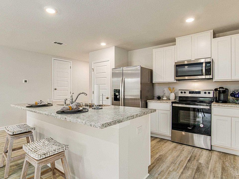 Introducing Lakes of Woodbine, a new community located in the heart of Pace. Step into the Freeport, a delightful 4-bedroom, 2-bathroom home with an open floorplan and a 2-car garage. The kitchen overlooks the spacious living room and is equipped with a large island, pantry, beautiful quartz countertops, and all stainless-steel appliances. Bedroom 1 is conveniently located just off the living room, featuring an adjoining bath and a walk-in closet. This home comes with an incredible Smart Home Technology package, including a KwikSet keyless entry, Skybell doorbell, automated front porch lighting, an Echo Dot device, and a Qolsys touch panel. With just a few taps, you can effortlessly control your lighting, thermostat, front door, and more. Imagine residing in a brand-new neighborhood in Santa Rosa County, where all your needs are just minutes away. This community will offer an array of resort-style amenities, including a refreshing pool, a welcoming clubhouse, convenient sidewalks, and a gym. Its central location provides easy access to shopping, dining, NAS Whiting Field, the UWF campus, and the breathtaking Emerald Coast Beaches. Come and experience the charm of Lakes of Woodbine, where your dream home and a vibrant community await you.