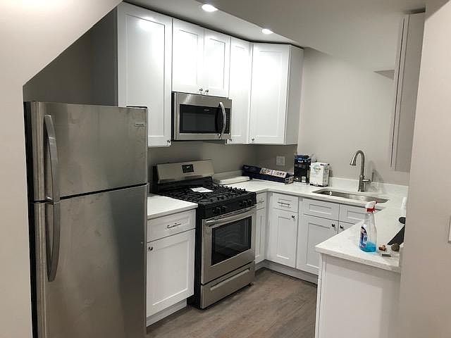 This is a brand new gut/rehab building. This apt is available for July 1 move-in or earlier. Everything is new in this 5 unit building. Gutted to the studs. This one bed apt includes a kitchen (12x6) that opens to the den (14x8). Bedroom is 9x9 with a standard size closet. Finishes are all high end condo quality. Stainless steel appliances, in-unit laundry, shared outdoor space, dishwasher, quartz counter-tops, high end white cabinetry. Central air/heat. Apt comes with a large 10x10 private storage room in the building basement. There is a large exterior deck off the 2nd floor and a shared patio space available for grilling. Great location at Seminary and School streets, across from the Hawthorne school and just 3 blocks walk to Belmont CTA. The apt is avail for July 1. Covered parking is available nearby for an additional 150. Pics are from the model unit. Both the model and the actual unit can be shown at any time. Tenant pays gas/electric and internet Owner pays water and trash