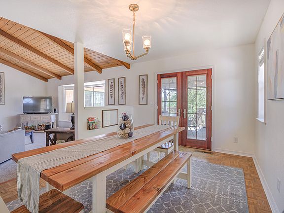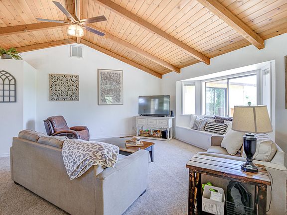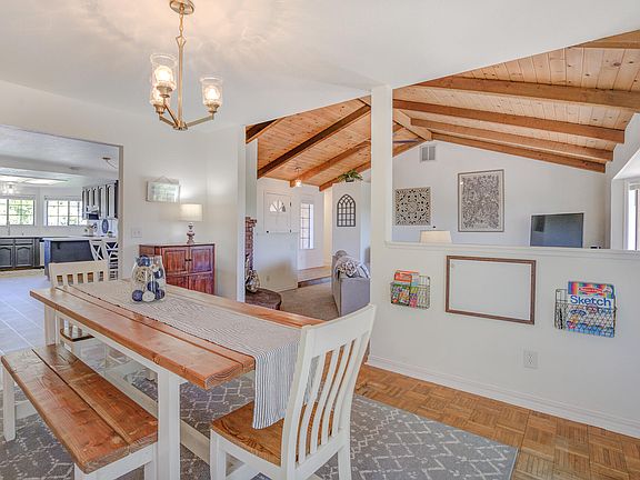 Welcome to this charming 2050 sq/ft 3 bedroom 2 bath home that combines comfort, functionality, and modern upgrades. Whether you're a growing family or a couple looking for a cozy space, this property offers a delightful living experience. This home sits on over a half-acre at the end of a quiet dead end street. The home features, a beautiful open floor plan, new corian counter-tops, large updated eat-in kitchen plus separate dining room, spectacular vaulted wood beamed ceilings in living room with wood burning fireplace, and a spacious private backyard perfect for entertaining or just relaxing with friends and family. Home boast pride of ownership at every turn and does not disappoint!! Your sure to enjoy the privacy and mountain views!