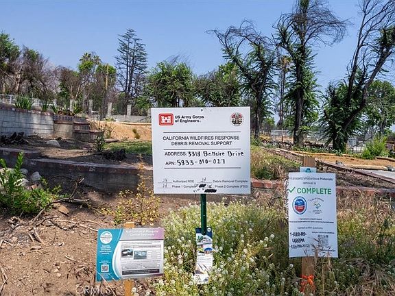 On a small street in the NW neighborhood of Altadena, lays the land of 3318 Bellaire Dr. This lot presents an excellent opportunity to construct a new home on a flat, spacious parcel of 10,157 SF. The pool and retaining walls still stand. Public records indicate the lost home was 1,956 square feet with 4 beds, 2 baths, plus a two car, attached garage. This home was destroyed in the Eaton Fire, and the property is being sold as land only. Phases I and II of the property cleanup and debris removal are complete.