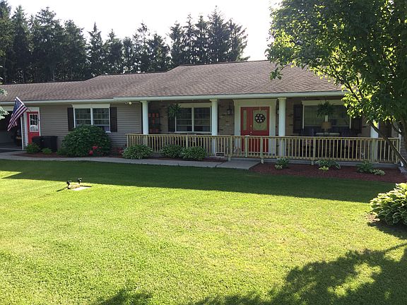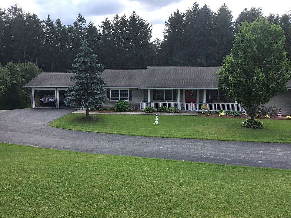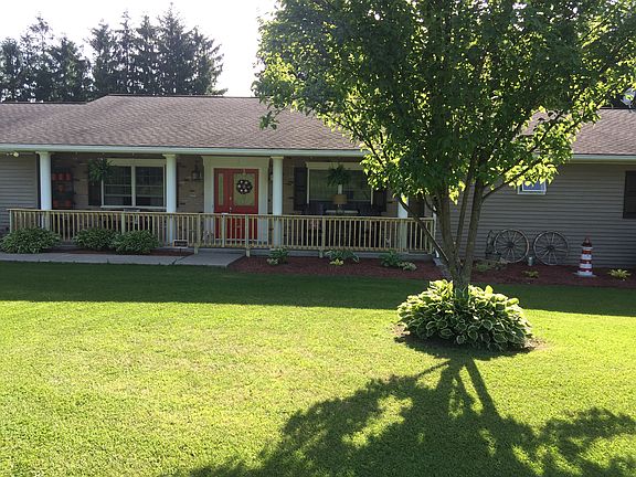 This stunning custom-built ranch style, nestled among tranquil private woods on 2 acres is move-in ready. The home is ADA compliant w/ wide hallway and doorways. COMPLETELY RENOVATED kitchen offers ample counter space and storage. The home has propane heating and central AC. Also, has new propane hot water tank, and whole house generator transfer panel. Offering 1000 sq ft of covered porches and open decks leading to brand new 24' above ground, round pool. Backyard gives plenty of space to entertain your friends and family. In addition, 2 1/2 car attached insulated garage and a walkout basement that is partially finished that allows for plenty recreation or workspace.