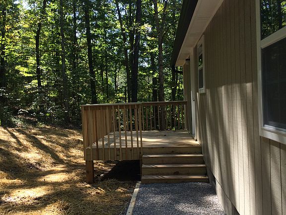 Secluded ranch style home on an acre surrounded by mature hardwoods. 2 bedroom 1 bath. Interior has all new kitchen, bath, flooring,etc. Exterior has new siding,roof and decks.