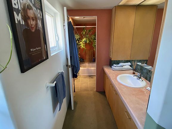 Award winning architect's original home available for lease. Pioneering sustainable complex in the Helms Arts District has private and shared outdoor landscaped courtyards, 930 sf of interior space, major appliances and oak dining table. Main space features built-in graphic arts work spaces. Spectrum cable, reasonable power, gas, and water use included. Apartment is entered through a shared courtyard with two separate entrances. 100 feet from public transit, gourmet shops and the neon light show from the Helm's Building. Email for video tour.