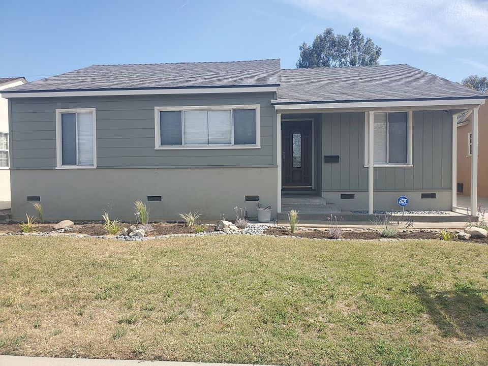 Move in ready home located in an excellent family oriented neighborhood and conveniently located near parks, schools, and various shopping and dining centers. Home has been extensively upgraded with remodeled kitchen and bath, nice custom laminate wood flooring, freshly painted, newer fixtures, along with central air & heat, and laundry area. Exterior is freshly painted with custom landscape design, long driveway with 2 car detached garage with opener, covered patio area and spacious yard for kids to play. Truly a must see