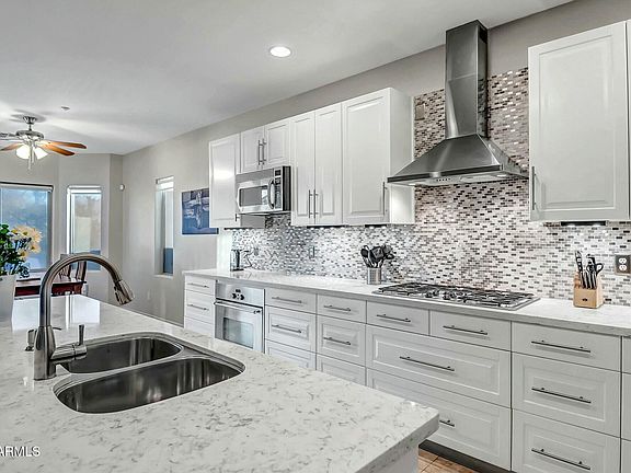 Located in the exclusive Landings community of Anthem, this exceptionally rare home offers unobstructed, breathtaking views of Daisy Mountain. The remodeled chef's kitchen features white cabinetry, granite countertops, and stainless steel appliances, seamlessly opening to the living and dining areas—perfect for everyday living and entertaining. Step outside to your private retreat, where a heated Pebble Tec pool and spa invite you to relax and take in the stunning scenery. A 3-car garage adds convenience and ample storage. Meticulously maintained, this home boasts fresh interior and exterior paint, a newer AC, hot water heater, water softener, and new PVC irrigation. Every detail has been thoughtfully cared for, making it truly move-in ready. Located in the master-planned community of Anthem, this home offers access to an abundance of amenities, including hundreds of parks and playgrounds, a splash pad, a dog park, a community center with a pool and water park, tennis courts, pickleball courts, and scenic walking trails. A rare opportunity to own a home with unparalleled views and an unbeatable lifestyle!