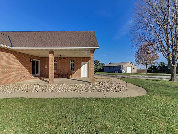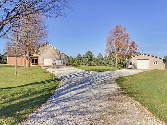 Beautiful Brick Home on 2.55 ACRES with first floor bedrooms, natural gas, tons of upgrades and heated machine shed! Large room sizes throughout. Master suite with large walk-in closet, jetted tub and access to covered patio. Vaulted family room with fireplace, open kitchen concept and a formal dining room. Custom Hickory cabinets throughout. Upper level features a theatre room, office area and a half bath. Large garage plus a 30x40 outbuilding. Generator included. New Roof in 2017.