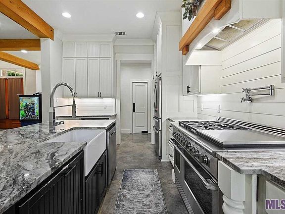 FABULOUS FARMHOUSE THAT SITS ON JUST UNDER A HALF ACRE AND HAS ALL THE UPGRADES YOU HAVE BEEN LOOKING FOR! IT FEATURES AN OPEN FLOOR PLAN WITH A HUGE SLAB GRANITE ISLAND THAT SHOWS OFF A BEAUTIFUL GREY AND WHITE PATTERN, STAINLESS APPLIANCES, COMMERCIAL 48 DCS RANGE WITH DOUBLE OVENS, 5 BURNERS AND A 24 GRIDDLE, WET BAR WITH A SEP DRINK COOLER, LARGE WALK IN PANTRY, POLISHED CONCRETE FLOORS THROUGHOUT THAT ARE GREAT FOR FAMILY PETS. THE SPLIT FLOOR PLAN SHOWS OFF 2 LARGE BEDROOMS AND FULL BATH ON ONE SIDE, THE MASTER BEDROOM IS OFF THE KITCHEN AND FEATURES A 6' FREESTANDING BATHTUB, HUGE SOLID QUARTZ SEPARATE SHOWER, WATER CLOSET, AND OPENS INTO THE LARGE MASTER CLOSET THAT OPENS TO THE LAUNDRY ROOM AND HAS A HIDDEN CLOSET INSIDE IT COMPLETE WITH A COMBO LOCK DOOR TO STORE ALL OF YOUR VALUABLES. 4TH BEDROOM/BONUS ROOM IS UPSTAIRS AND HAS ITS OWN BATH. HUGE COVERED BACK PATIO SHOWS OFF THE OUTDOOR KITCHEN COMPLETE WITH A BUILT IN BLAZE GRILL AND SEPARATE GRIDDLE AND MOUNTED TV THAT REMAINS AND OVERLOOKS THE FENCED IN BACKYARD WITH LARGE WORKSHOP AND LEAN TO COVER. LIVEOAK SCHOOL DISTRICT!