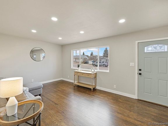 You don't want to miss this beautifully updated home located in central Cheyenne. Close proximity to schools, grocery stores and other amenities. This family home has new appliances, new furnace, new hot water heater, solid surfaces in kitchen and bathroom, refinished hardwood floors, and garage that opens to the kitchen for easy drop-off. All new exterior paint with fenced in backyard.