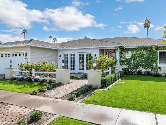This darling ranch has great style finished with excellent taste. A delightful courtyard entry leads to a home full of fresh design and fantastic living spaces. The open floor plan is loaded with natural sunlight, the island kitchen is great, there are two separate dining areas, a den/office, and the primary suite is lovely. The cottage like finishes including wood flooring, granite and tile accents, cabinet grade appliances, custom trim work, french doors, and beautiful cabinetry, and the outside is just as charming as the interior featuring a large covered patio overlooking a fantastic pool and large grassy yard perfect for the kids to play and adults to entertain. Beautifully set between Arcadia Lite and The Biltmore, and walking distance from excellent dining and shopping, this... special home is perfect for a growing family or empty nesters, and the location can't be beat!